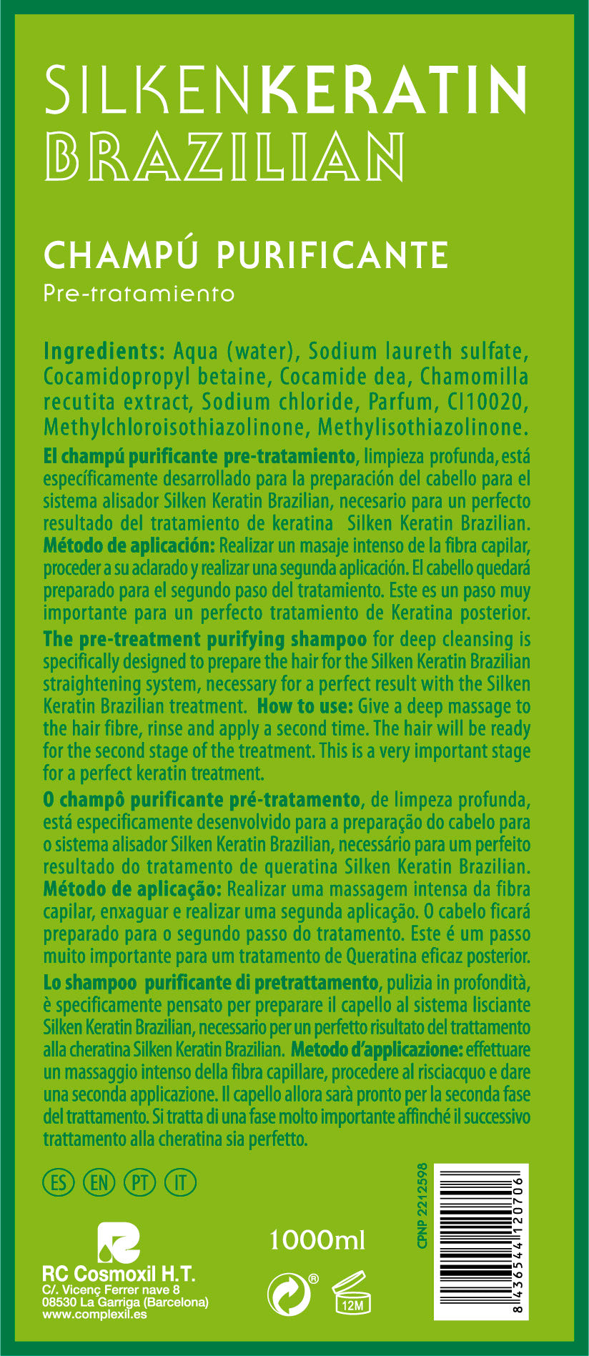 Complexil-Silken keratin-Paso 1- Champú purificante apertura de cutícula (previo tratamineto alisado)