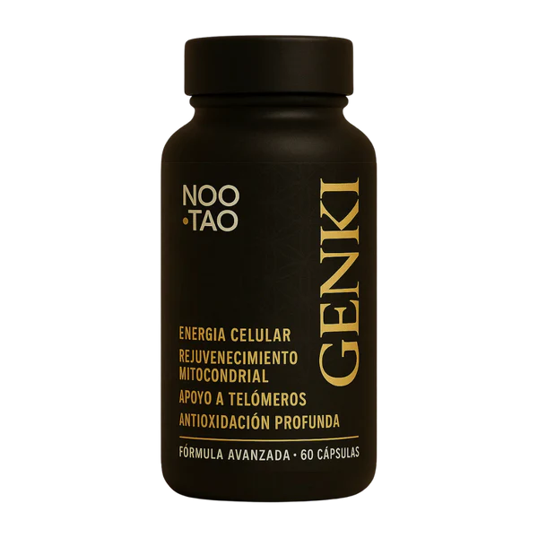Noo•Tao Genki es tu aliado diario para potenciar la vitalidad desde dentro. Su mezcla de Nicotinamida Ribósido (NR), PQQ, Resveratrol y CoQ10 activa la biogénesis mitocondrial, ayuda a proteger los telómeros y refuerza tu escudo antioxidante.